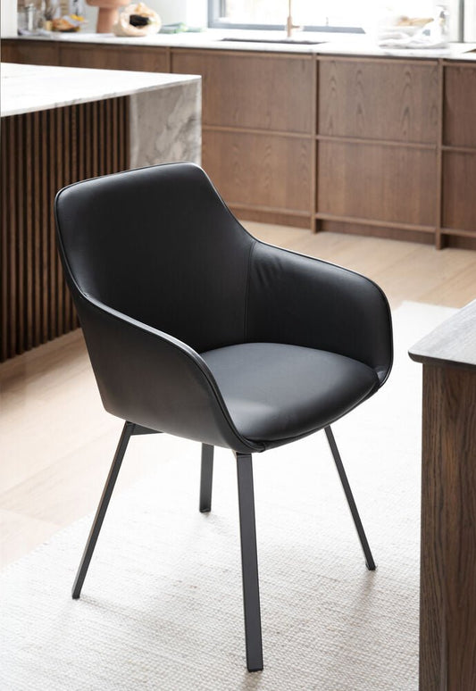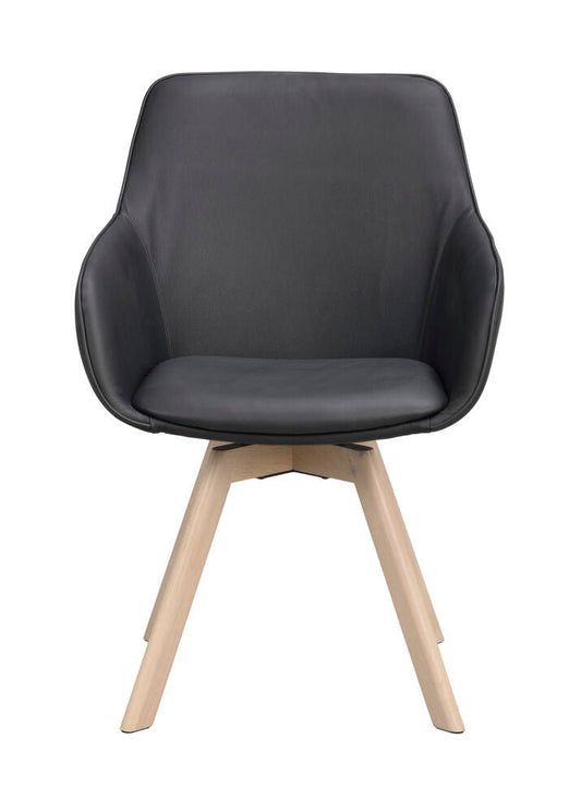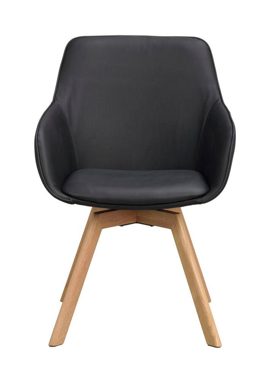 Alison Karmstol Svart läder/Vitpigmenterad Ek