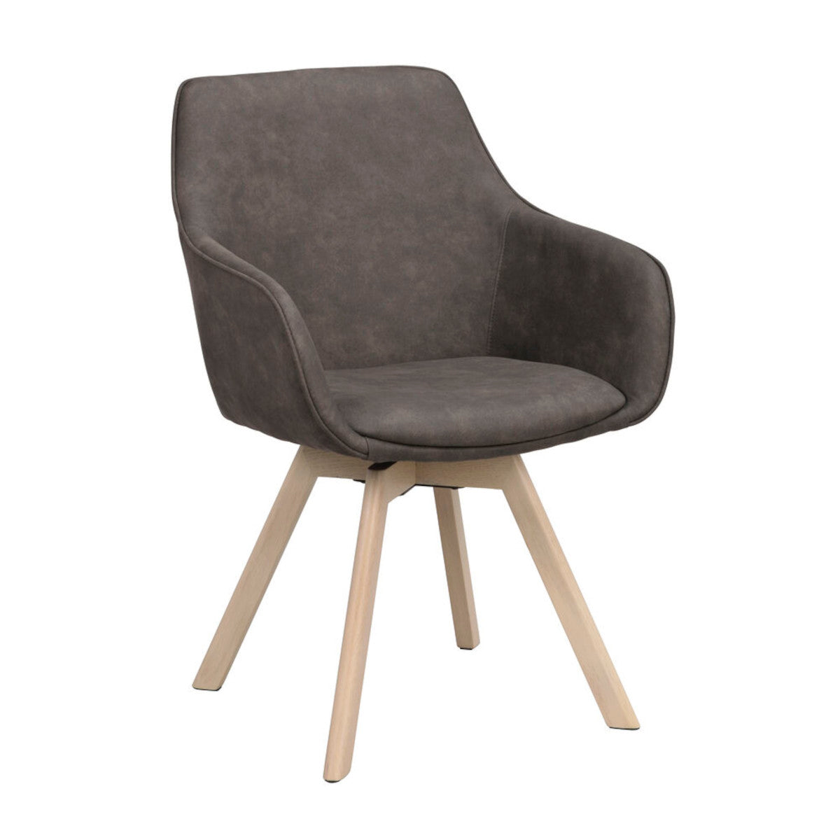 - Material: Sits i plywood med polyeterskum stoppning, microfiber tyg, ben i massiv ek med snurrfunktion.