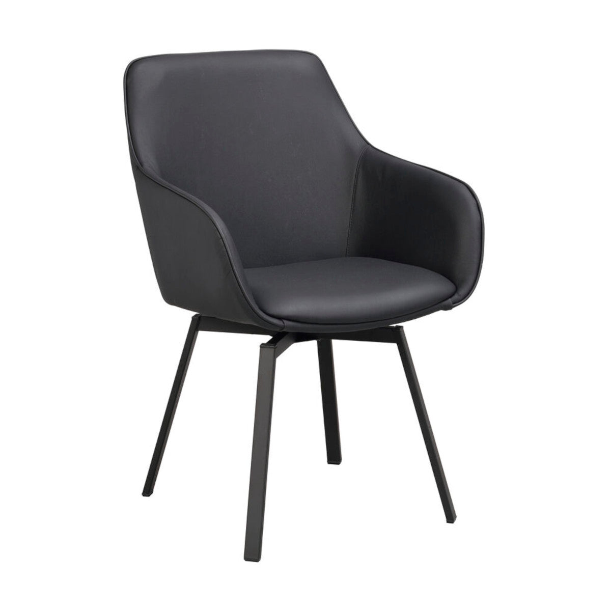 - Material: Sits i plywood med polyeterskum stoppning, äkta läder, ben i pulverlackad metall med snurrfunktion.